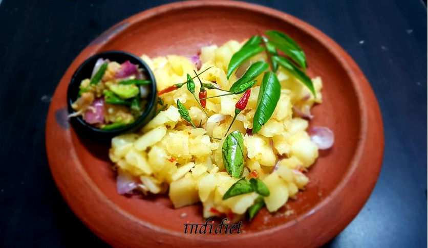 Tasty and spicy mango chutney is ready to be served with mashed tapioca.